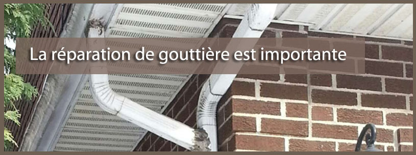 Comme vous pouvez le constater la gouttière joue un rôle important dans l’évacuation de l’eau. Il nous est déjà arrivé de voir une gouttière avec des pentes négatives ou une gouttière avec une descente arrachée, causer bien des dégâts. C’est pourquoi nous vous suggérons de faire une petite inspection et si vous remarquez une anomalie, des clous qui ressortent, une descente arrachée, une gouttière qui s’écoule mal, un coin qui coule, ne tardez pas et faites les travaux aussi rapidement que possible.